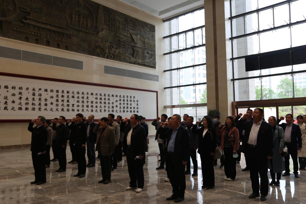 面对党旗,全体党员庄严肃立,在校党委副书记赵振然领誓下,重温入党誓词。随后,依次参观了中国古代廉政文化展、中国共产党党风廉政建设展、新时代河南全面从严治党成果展三个主题展厅,深入学习了我国廉政文化的历史源流、中国共产党廉政建设历程及我省全面从严治党的成果。